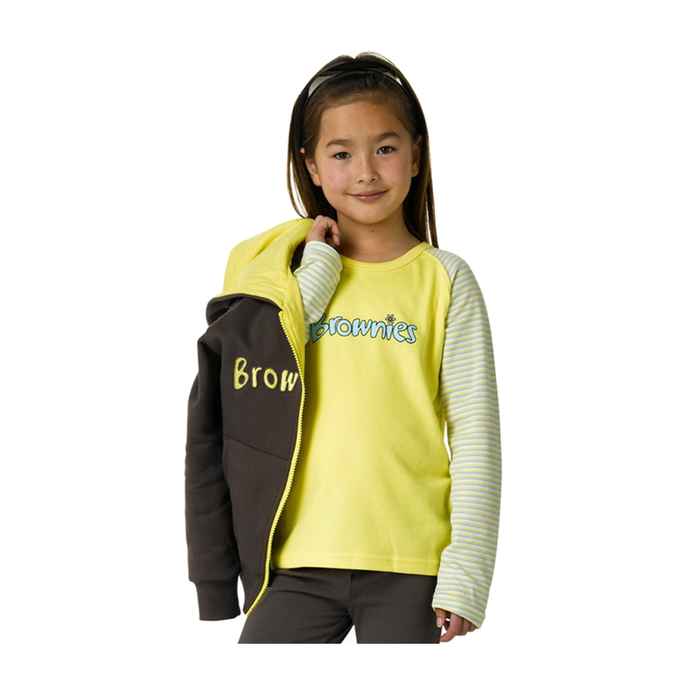 This Brownies t-shirt has striped long-sleeves to keep you warm in cooler months. Team it with the Brownies gilet for extra warmth (and a new look too). Part of the Brownies uniform mix and match range.